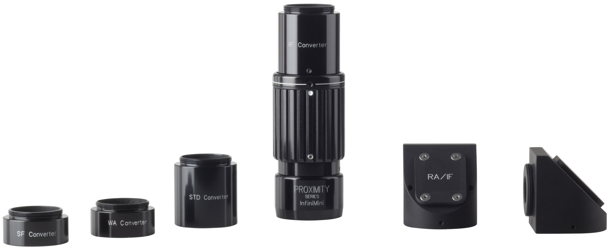 provides wide fields, particularly with 1/3-in., and smaller formats. Regardless of the converter used, InfiniMini progressively corrects its optical performance